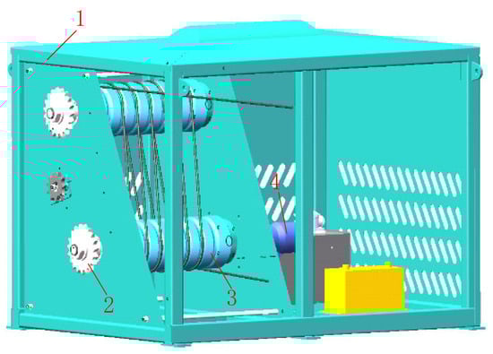Structural diagram of the power module. 1. Drive roller; 2. Hydraulic motor; 3. Wire rope; 4. Engine.