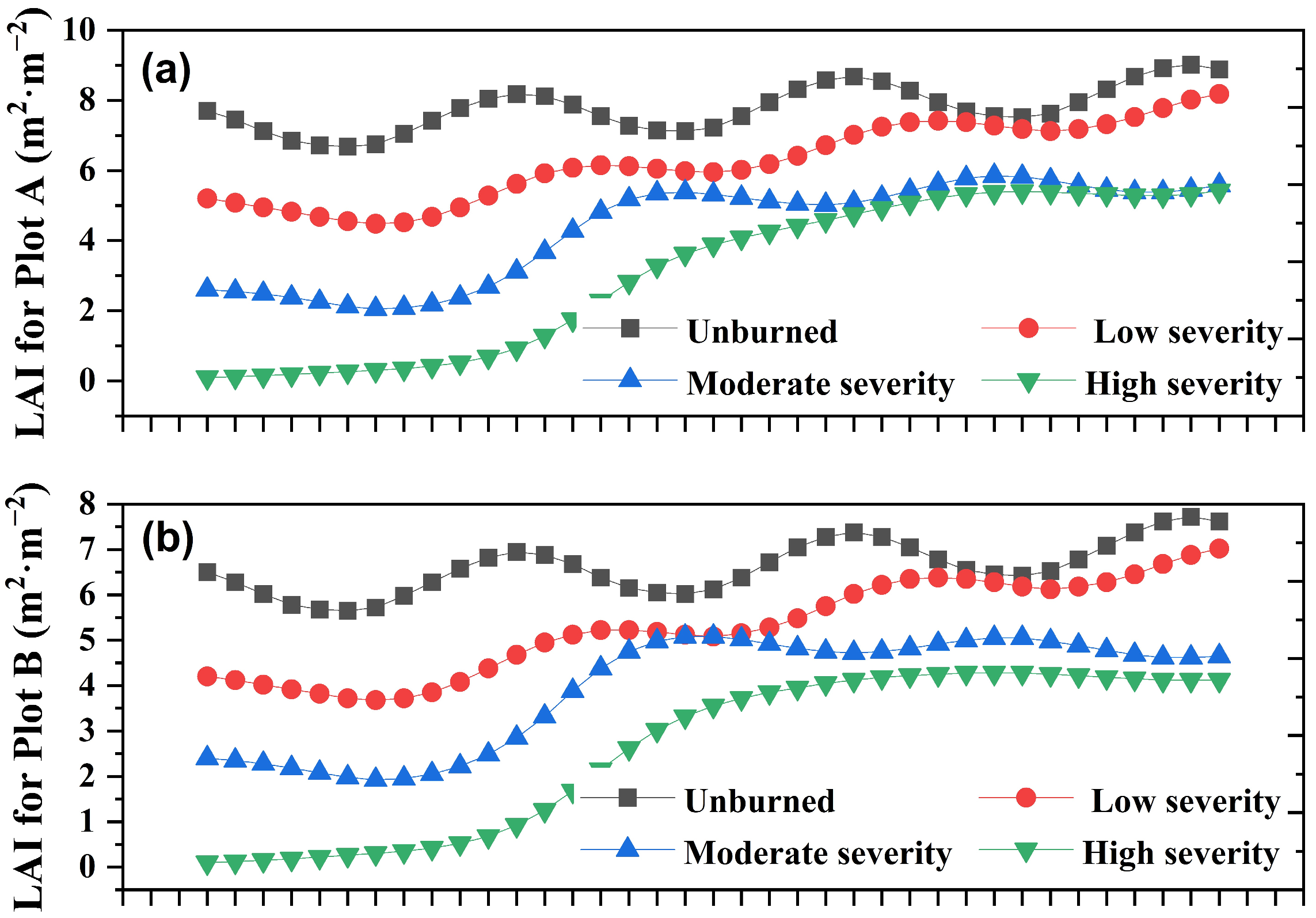 | Burn Severity | First Peak | Second Peak | Time-Lag Characteristic | Ecological Mechanism |