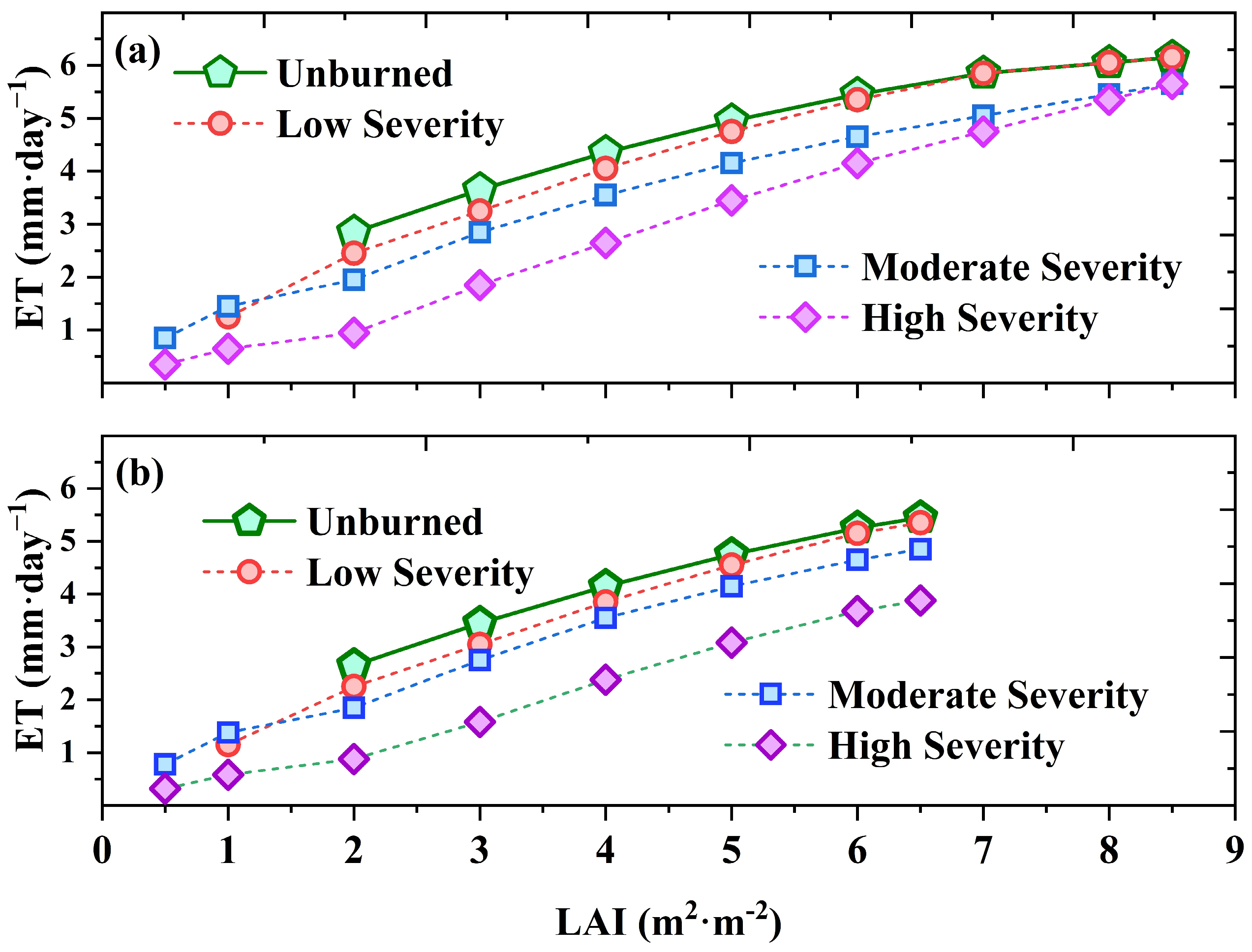 3.1. Post-Fire LAI Dynamics and ET Recovery Patterns