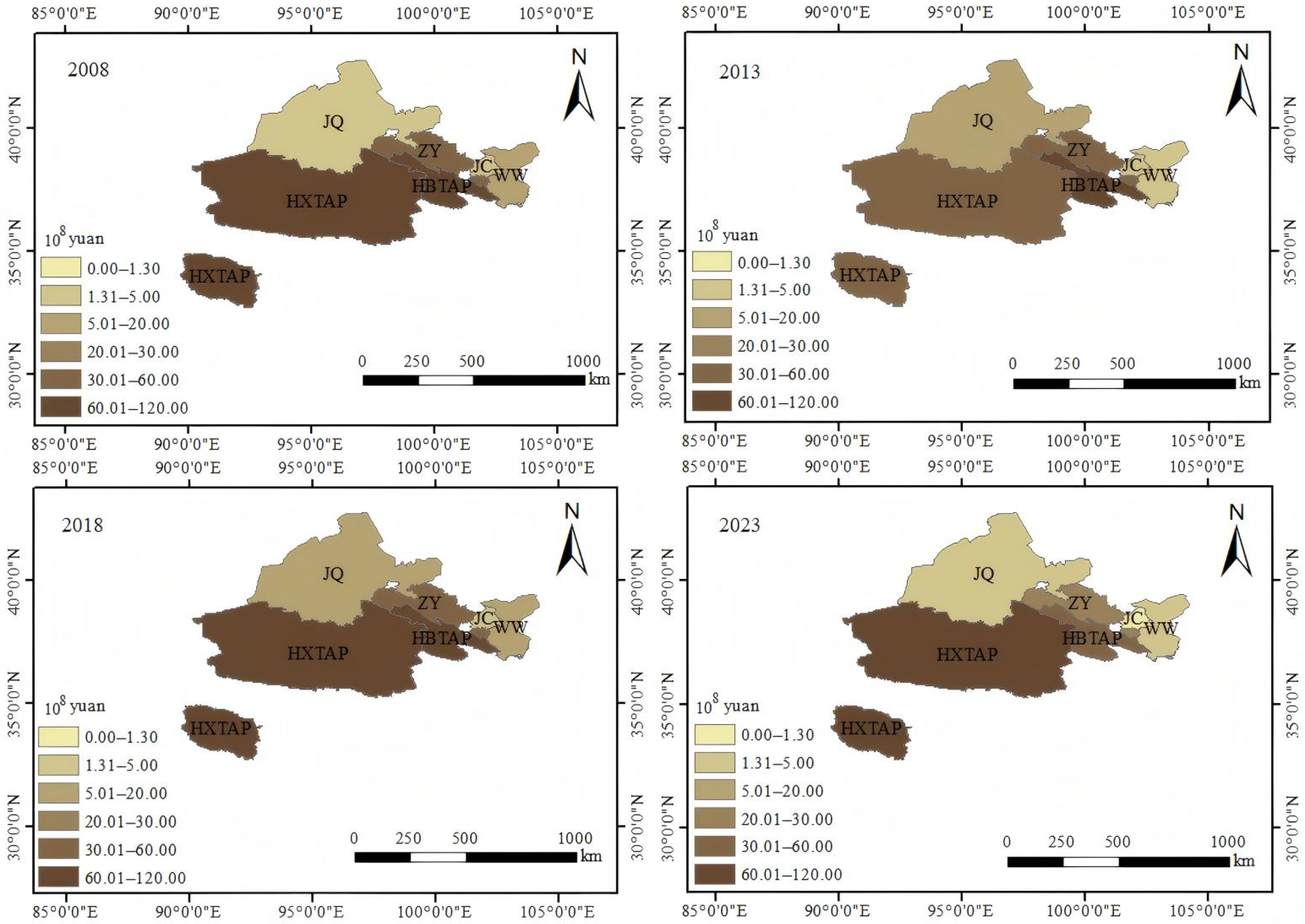 | Haixi Mongolian and Tibetan Autonomous Prefecture (HXTAP) | 21.53 | 1.23 | 0.74 | 20.01 |