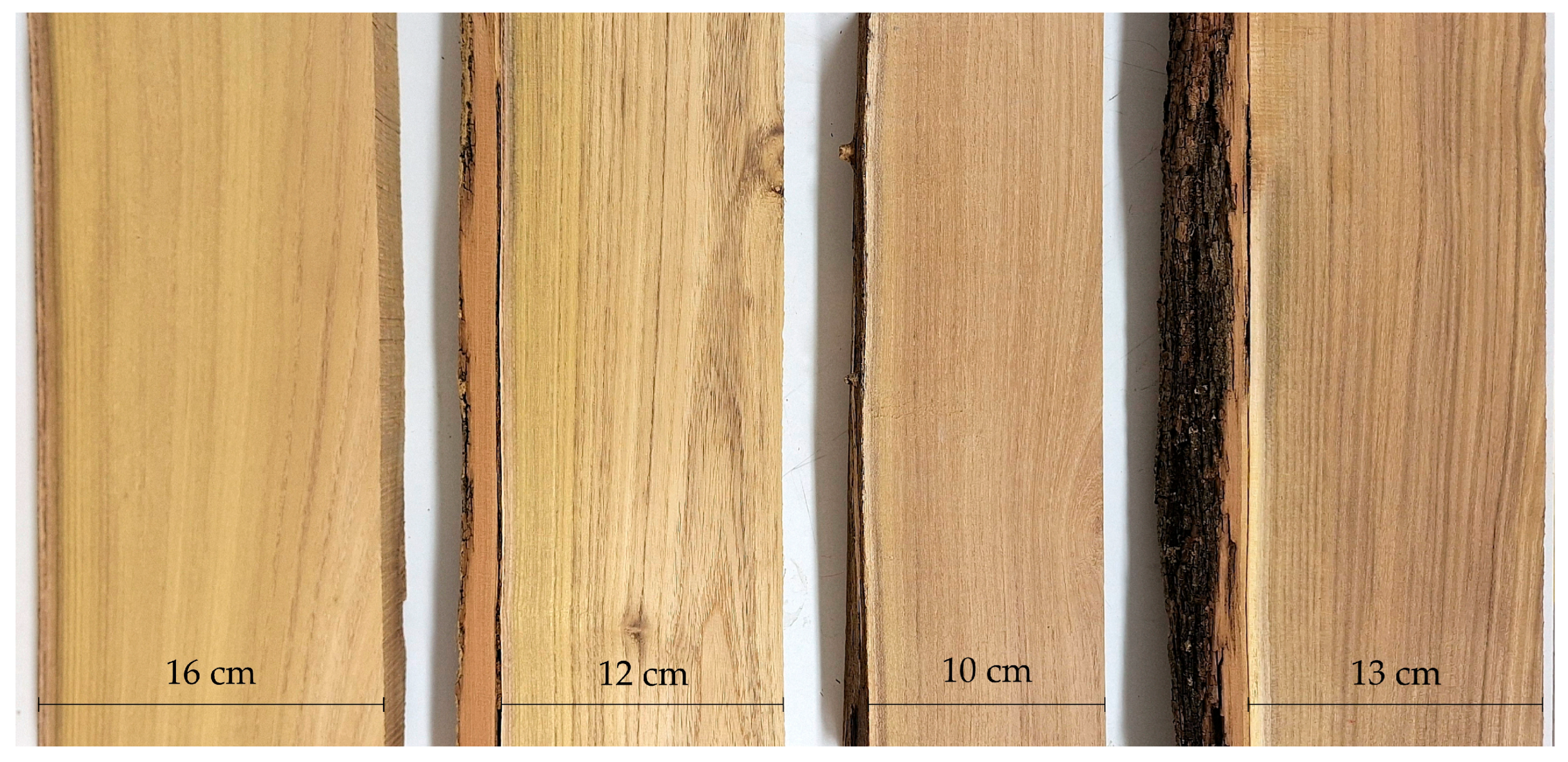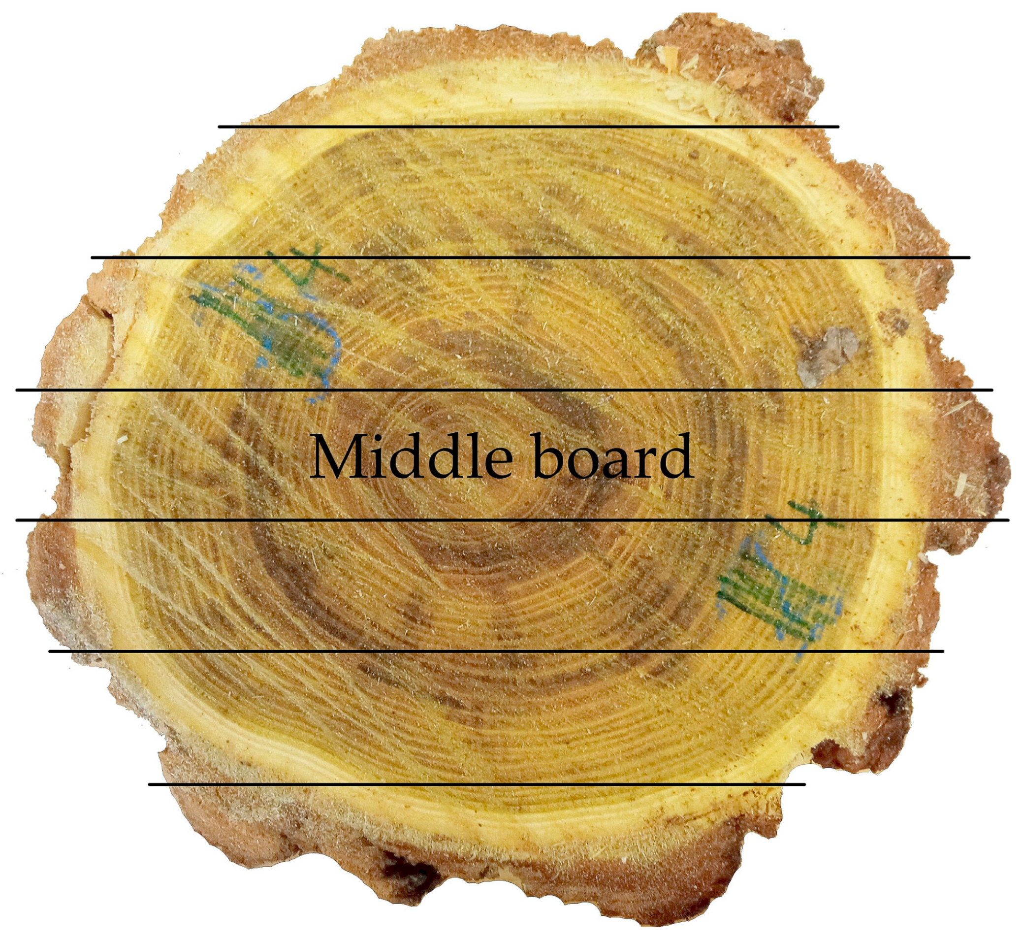 54]. A total of 23 pieces of board from the central heartwood (referred later as middle board;