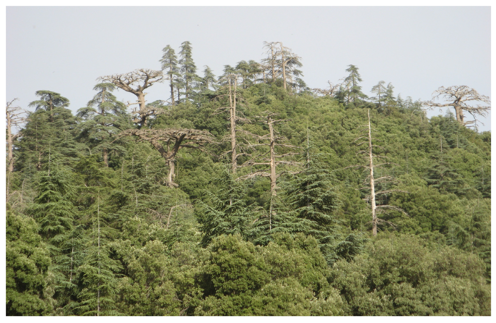 The most abundant tree species in the stands studied was Q. rotundifolia, mostly regenerated as sprouts which were distinguishable from seedlings because they lacked scars of cotyledonary leaves. In this region, the Atlas cedar mortality appears to be taking place mainly in old trees on dry sites such as steep slopes with southern exposure and rocky soils [].