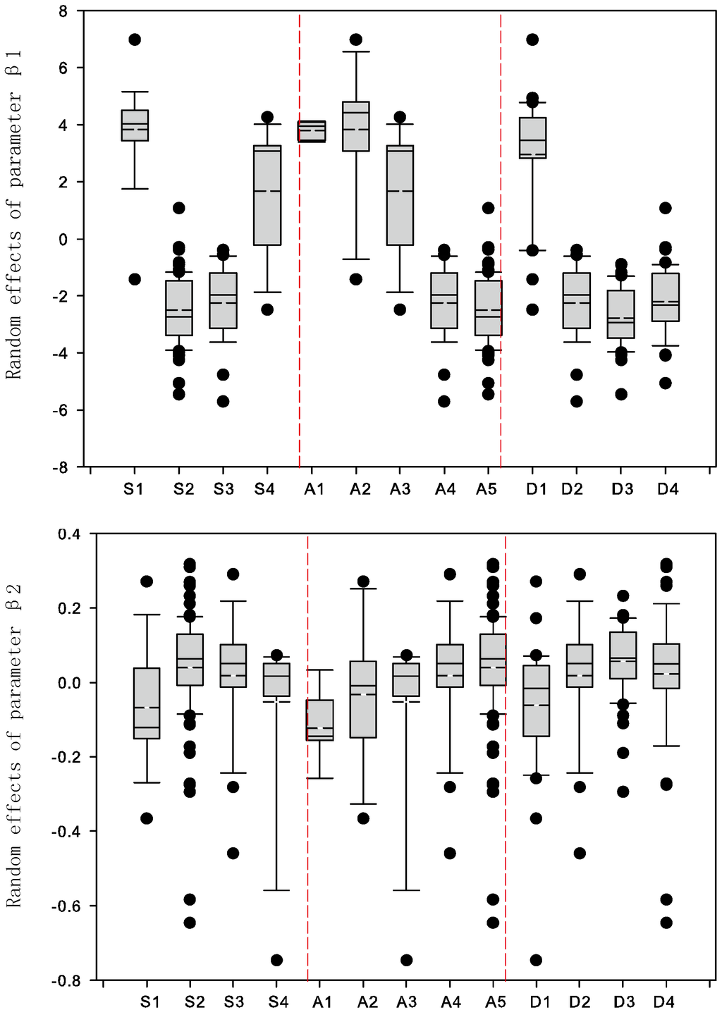 | 1 | β1, β2 | β1, β2 | 2098.2 | 2141.7 |