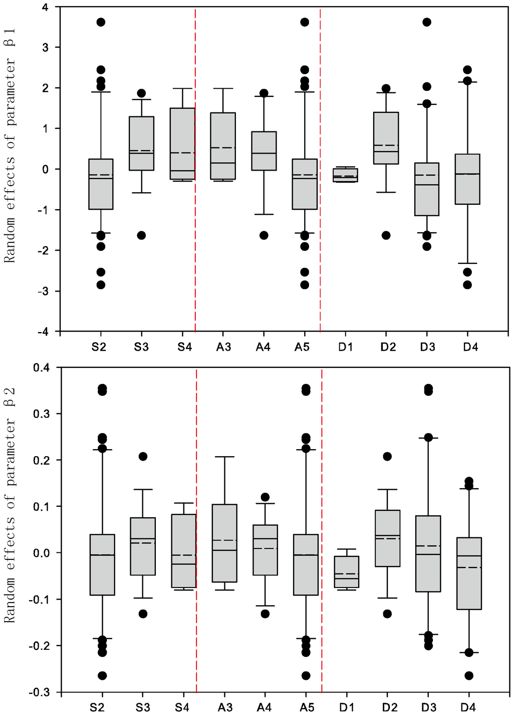 | Model No. | Mixed-Effect Parameters | AIC | BIC |
