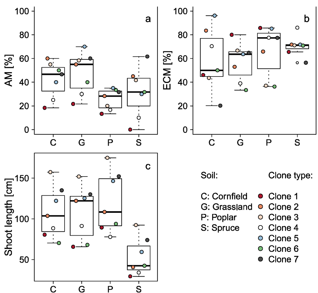 Gherghel, F.; Behringer, D.; Haubrich, S.; Schlauß, M.; Fey-Wagner, C.; Rexer, K.-H.; Janßen, A.; Kost, G. Former Land Use and Host Genotype Influence the Mycorrhizal Colonization of Poplar Roots. Forests 2014, 5, 2980-2995. https://doi.org/10.3390/f5122980