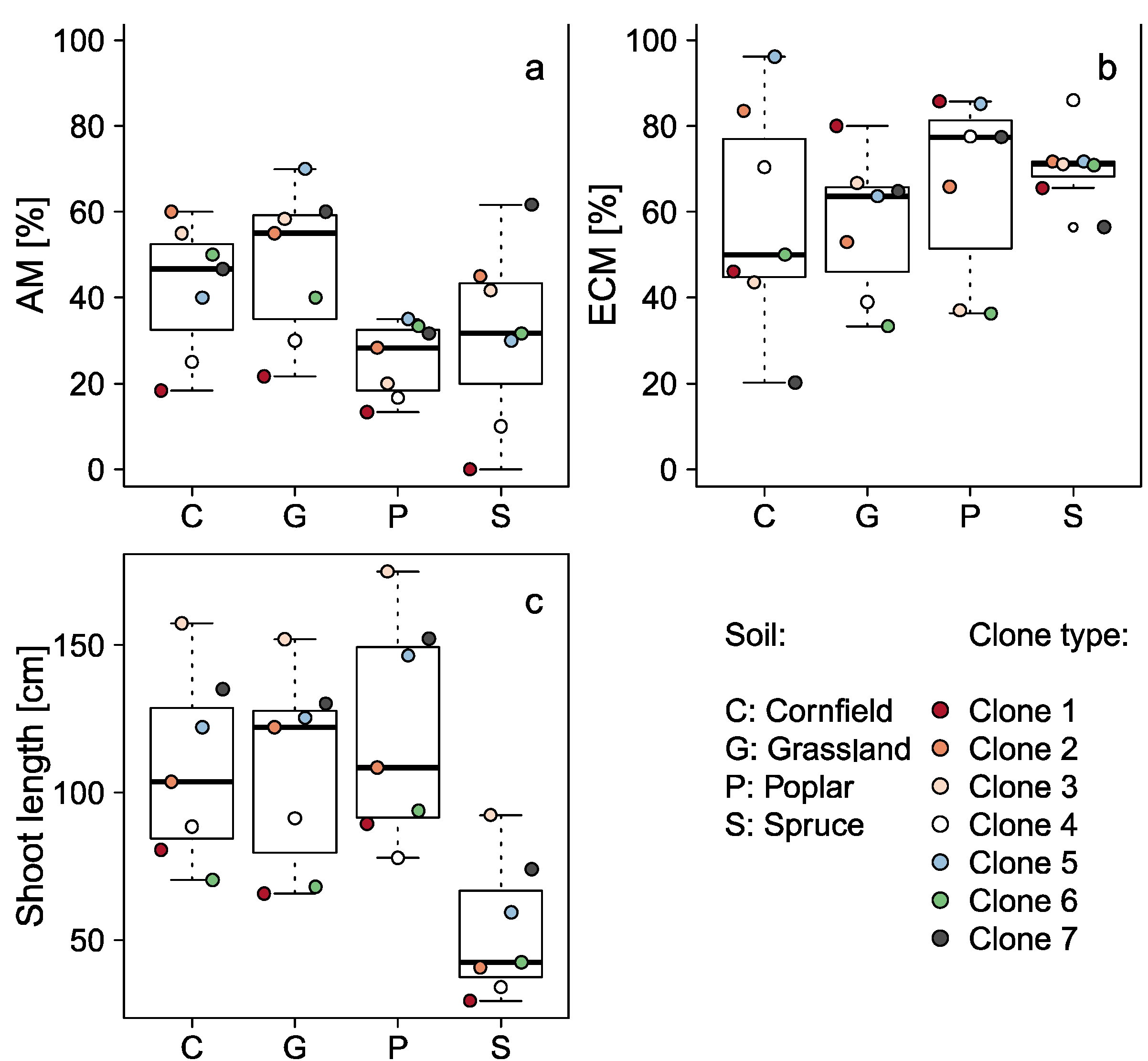 Gherghel F, Behringer D, Haubrich S, Schlauß M, Fey-Wagner C, Rexer K-H, Janßen A, Kost G. Former Land Use and Host Genotype Influence the Mycorrhizal Colonization of Poplar Roots. Forests. 2014; 5(12):2980-2995. https://doi.org/10.3390/f5122980