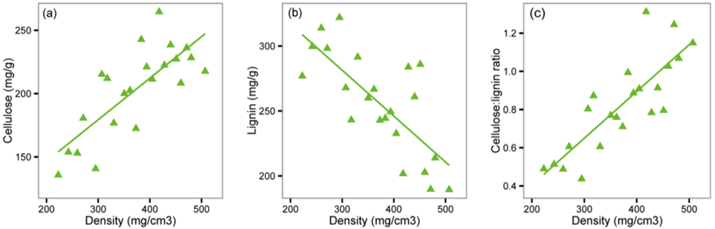 | Cellulose: Lignin *Density | Df | 1 | 1 | - | - |