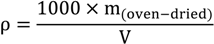 where, m(oven-dried) is the oven-dried (70 °C , 72 h) mass (g) and V is the saturated volume (cm3) of the subsample.