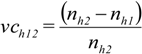 where vch12 represents an estimate of vegetation cover between height above ground h1 and h2 (h1 < h2), while nh1 and nh2 represent the number of LiDAR return points below height h1 and below height h2, respectively. The variables h1 and h2 represent the lower and upper height border of a stratum.