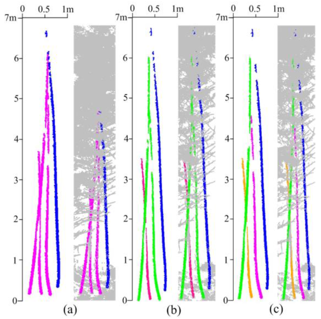 | Point clouds of stem (Height ≈ 80 cm, Radius ≈ 4 cm) | ![]() | ![]() | ![]() | ![]() | ![]() | ![]() | ![]() | ![]() | ![]() | ![]() | ![]() | ![]() |