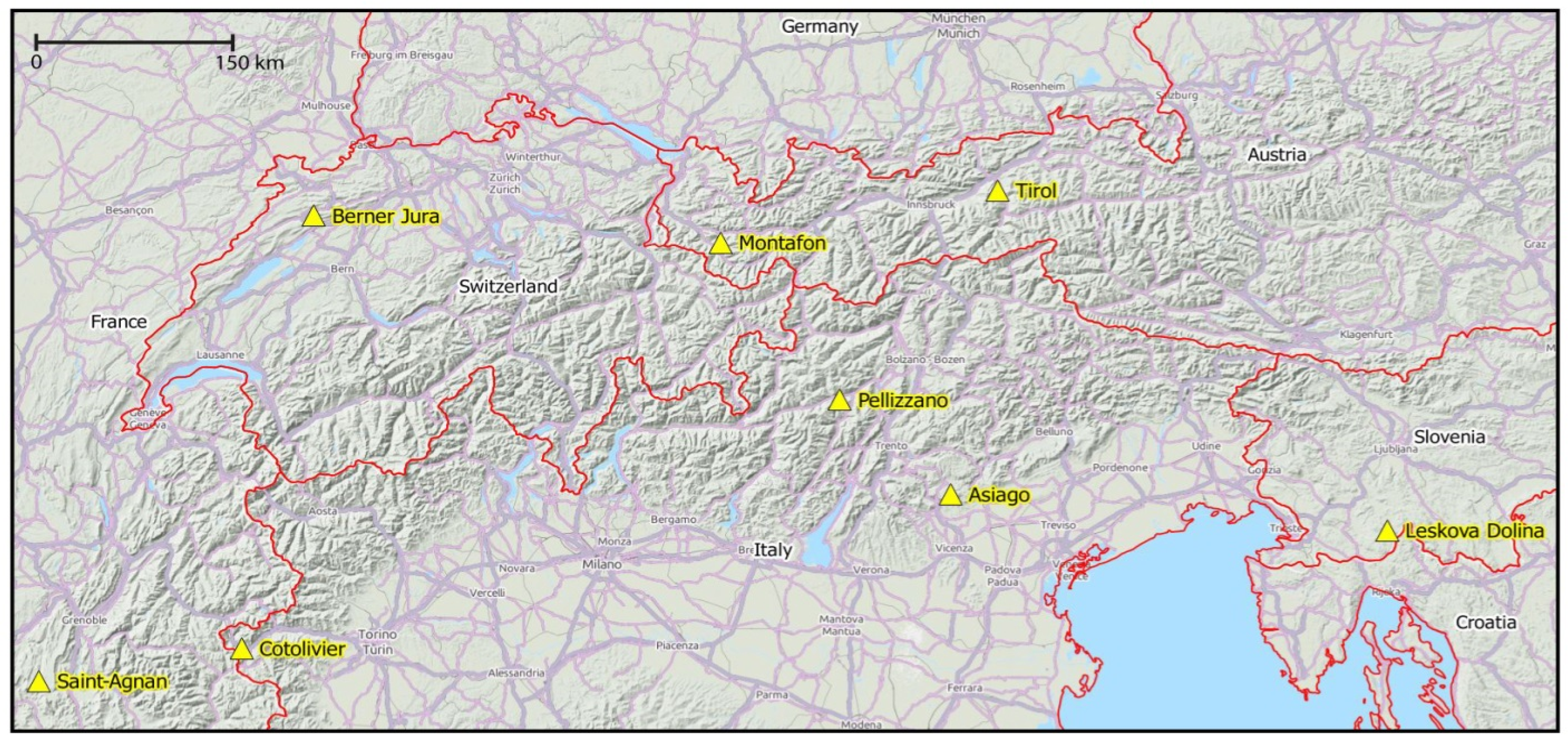 Study areas located within the Alpine Space.