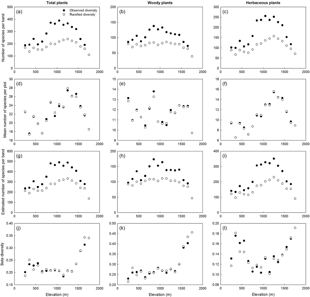 | Elevational Band (m) | Number of Plots | Total | Woody | Herbaceous |