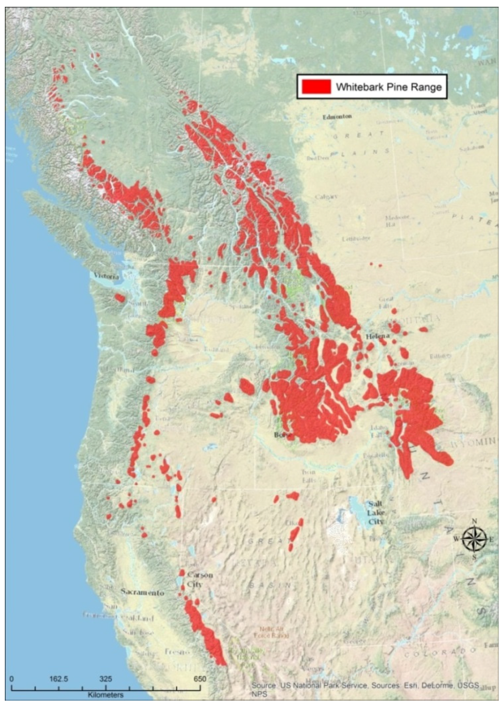 The distribution of whitebark pine (Pinus albicaulis Engelm.). (Source: Whitebark Pine Ecosystem Foundation [27]).