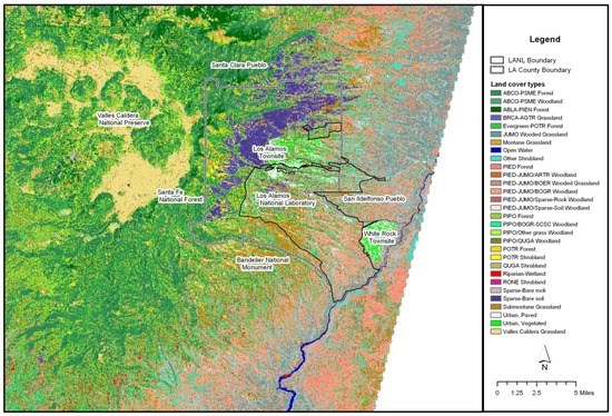 - Balice, R.G.; Ferran, S.G.; Foxx, T.S. Preliminary Vegetation and Land Cover Classification for the Los Alamos Region; LA-UR-97-4627; Los Alamos National Laboratory: Los Alamos, NM, USA, 1997. [Google Scholar]