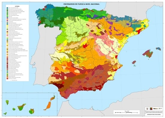 - Galiana, L.; Aragoneses, C.; Montiel, C.; de la Cita, J.; Fernández, M. Caracterización de los escenarios del fuego en España. In Proceedings of the 5th Congreso Forestal Español, Ávila, Spain, 21–25 September 2009.