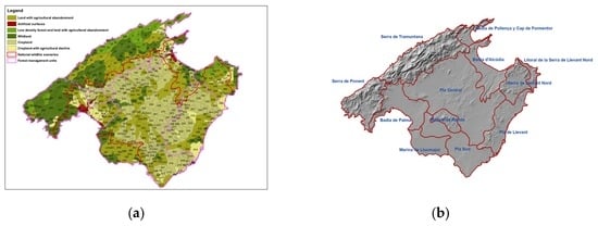(a) Territorial dynamics linked to wildfire generations on the island of Mallorca; (b) Map of regional fire scenarios.