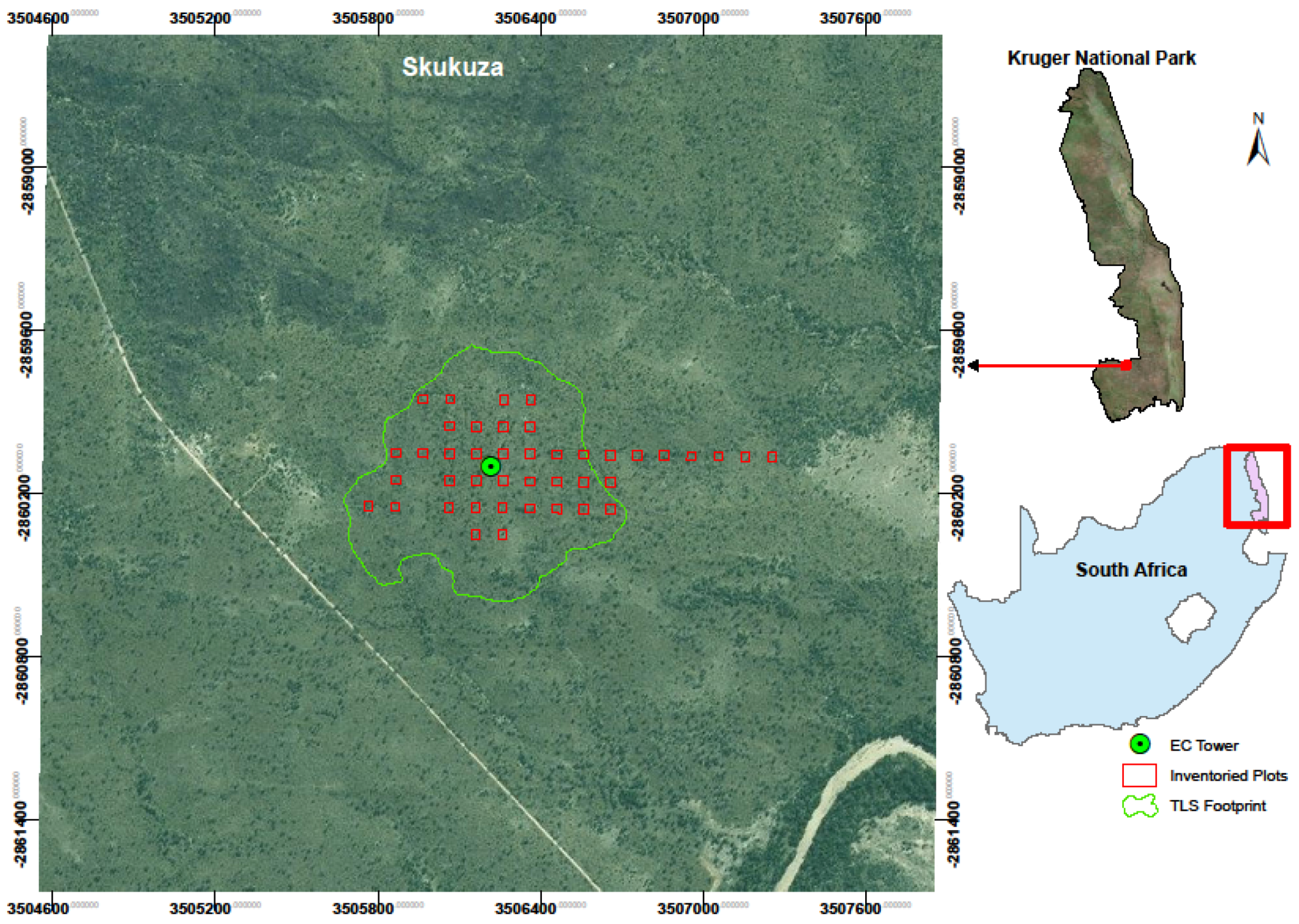- Scholes, R.J.; Gureja, N.; Ginannecchinni, M.; Dovie, D.; Wilson, B.; Davidson, N.; Piggott, K.; McLoughlin, C.; van der Velde, K.; Freeman, A.; et al. The environmental and vegetation of the flux measurement site near Skukuza, Kruger National Park. Koedoe 2001, 44, 73–83. [Google Scholar] [CrossRef]