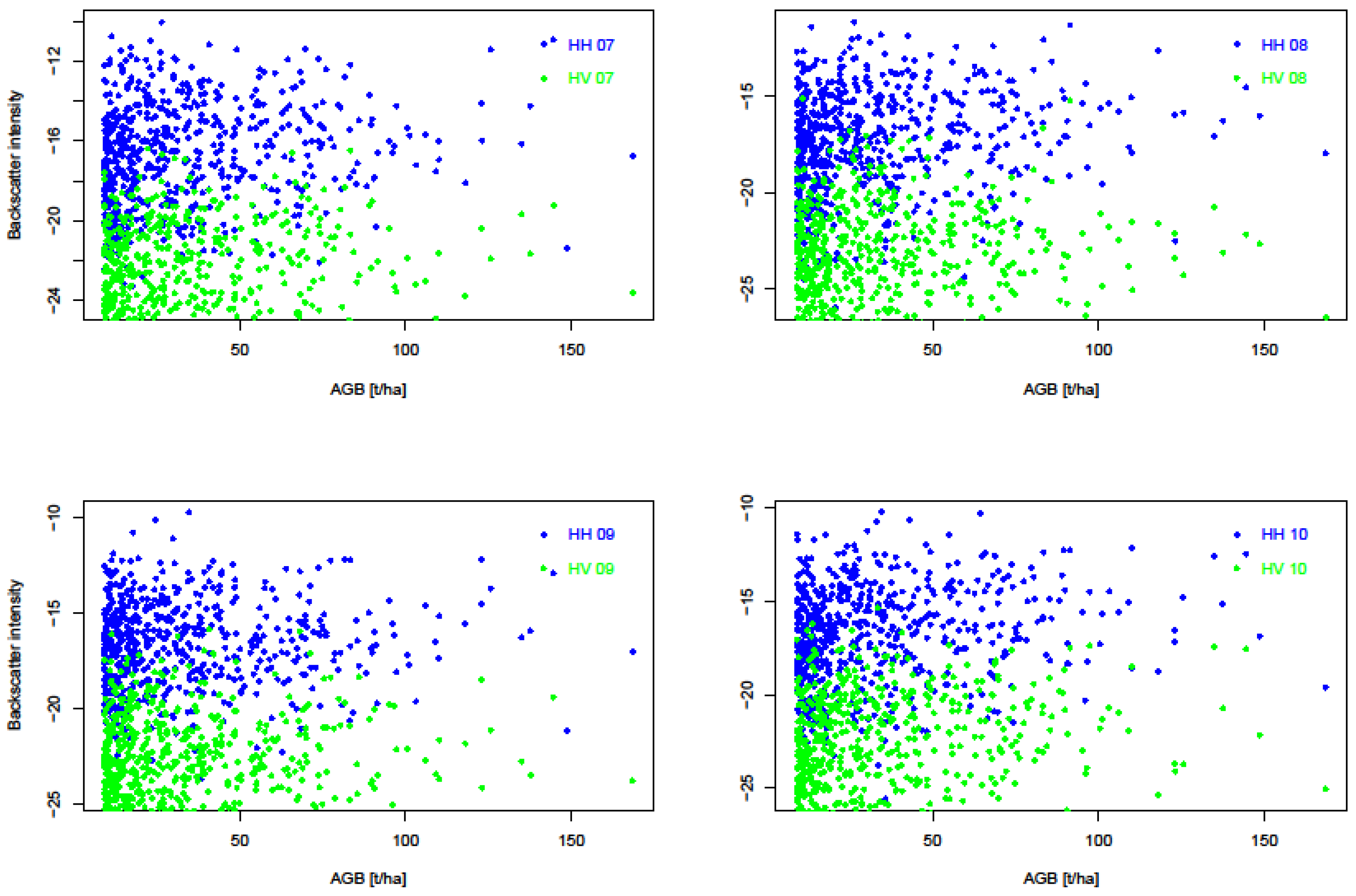 - Carreiras, J.M.B.; Vasconcelos, M.J.; Lucas, R.M. Understanding the relationship between aboveground biomass and ALOS PALSAR in the forests of Guinea-Bisau (West Africa). Remote Sens. Environ. 2012, 121, 426–442. [Google Scholar] [CrossRef]