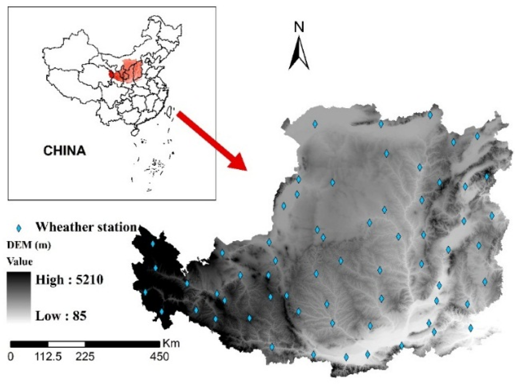 Location of the weather stations in the Loess Plateau of China.