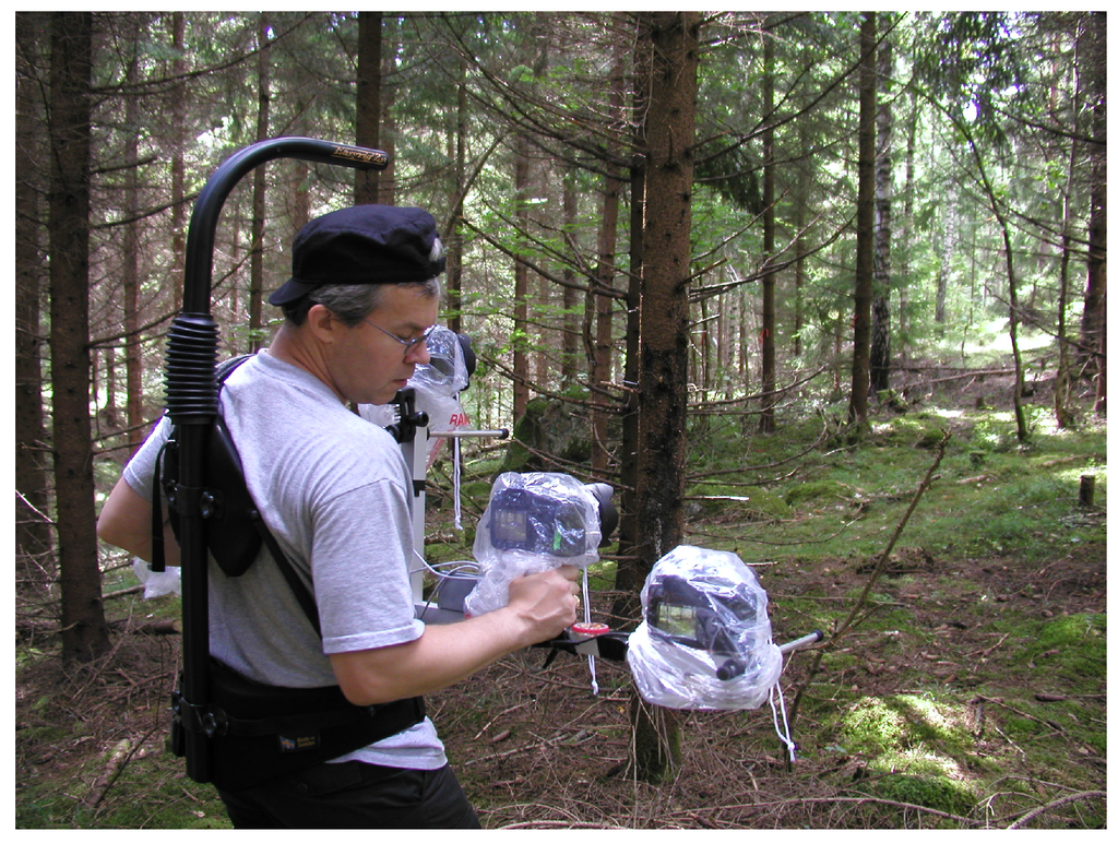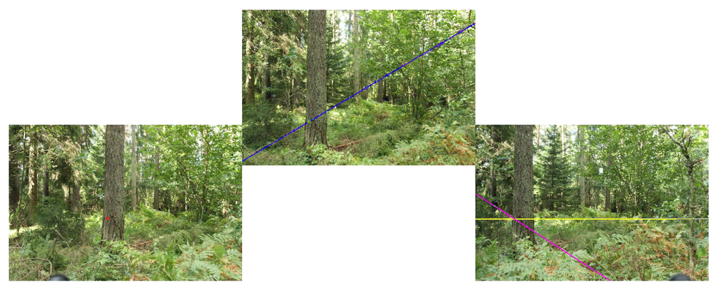 Other future investigations include a comparison between a three-camera and five-camera rig to allow for a less expensive, smaller and lighter rig, as well as a study of exposure parameters to reduce the weather sensitivity. A potential of our method is that the rig could be useful for forest inventory using a transect method where the trees along a path are measured, such as in Hessenmöller et al. [33]. The co-registration methods used in this study are easy to apply to a stop and go acquisition scheme, where an image set is acquired for every few steps.