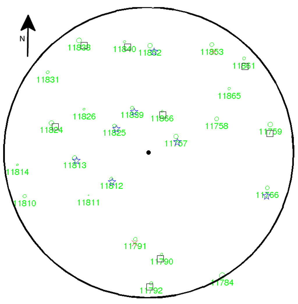 - Liang, X.; Litkey, P.; Hyyppä, J.; Kaartinen, H.; Kukko, A.; Holopainen, M. Automatic plot-wise tree location mapping using single-scan terrestrial laser scanning. Photogramm. J. Finland 2011, 22, 37–48. [Google Scholar]
