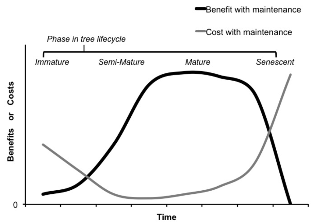 Hypothetical benefits and costs over a tree’s lifetime [10]. Used with the permission of the International Society of Arboriculture.