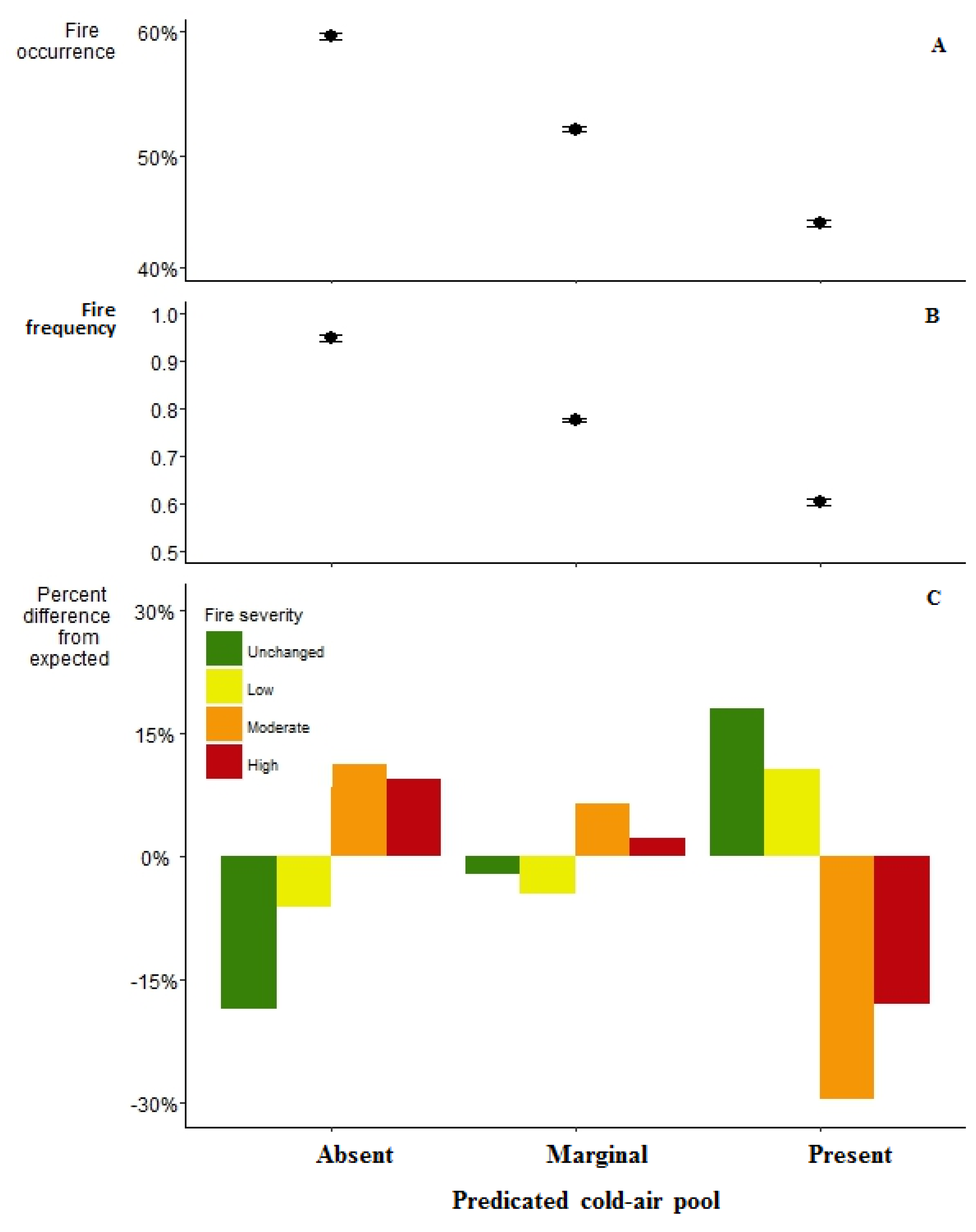 - If fires occur, do cold-air pools have similar fire severity patterns as their surrounding landscape?
