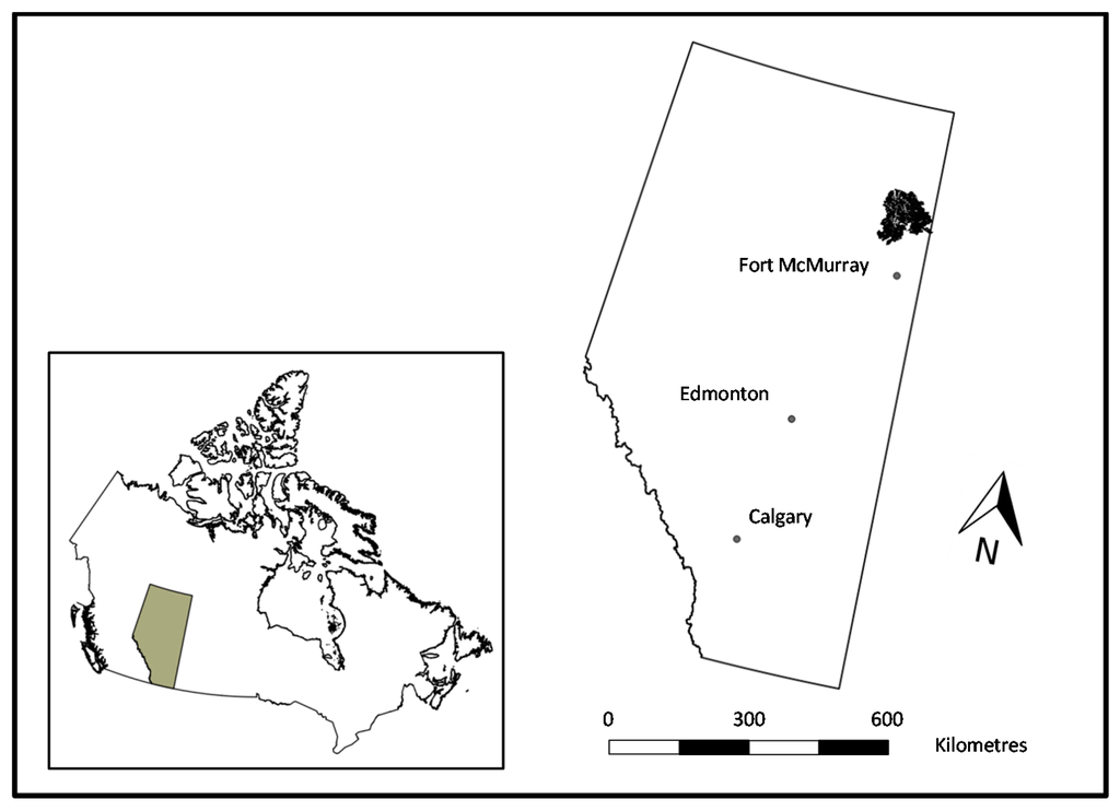Location of the 2011 Richardson Fire in northeastern Alberta, Canada.