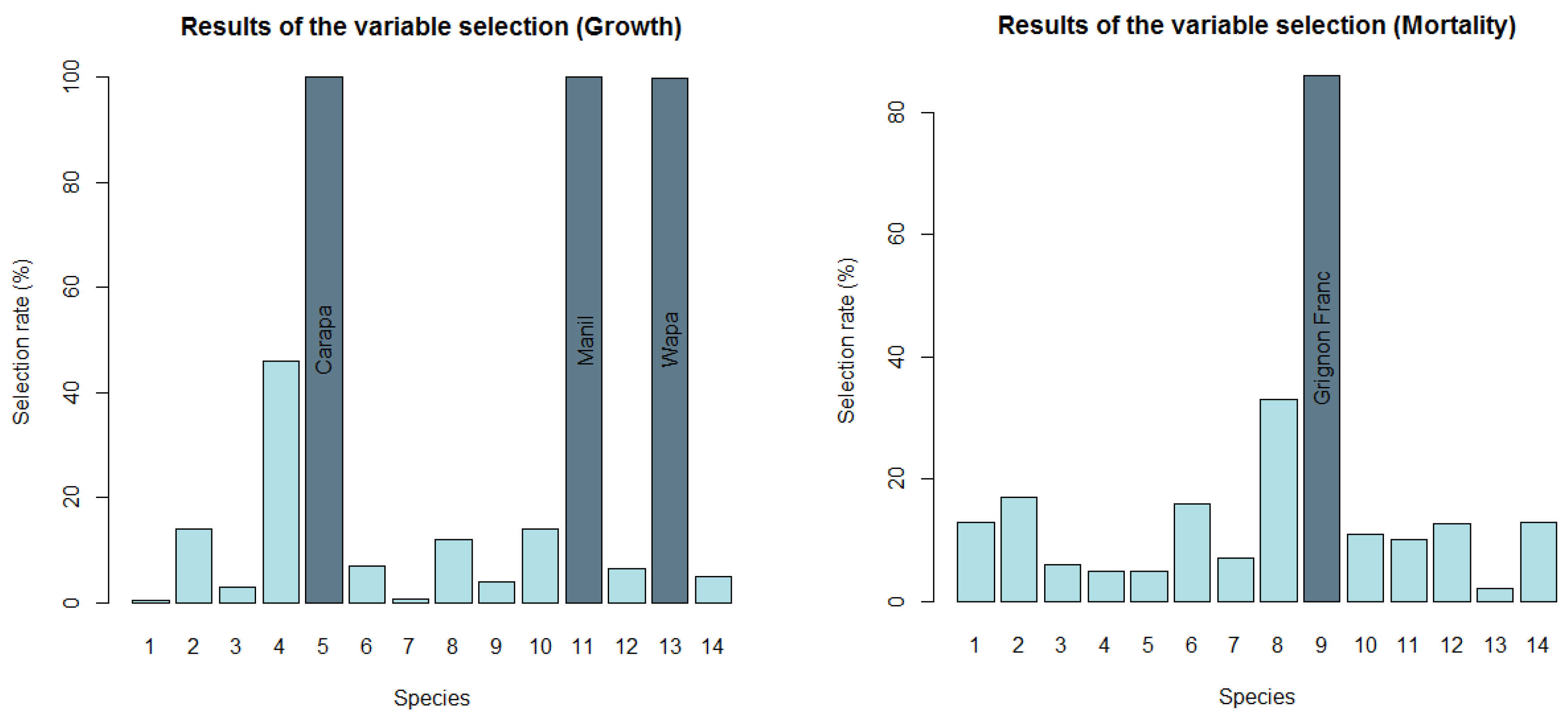 | Yayamadou Montagne | Virola michelii Heckel | 344 | (10.00–61.27) | 0.27 | 0.26% |