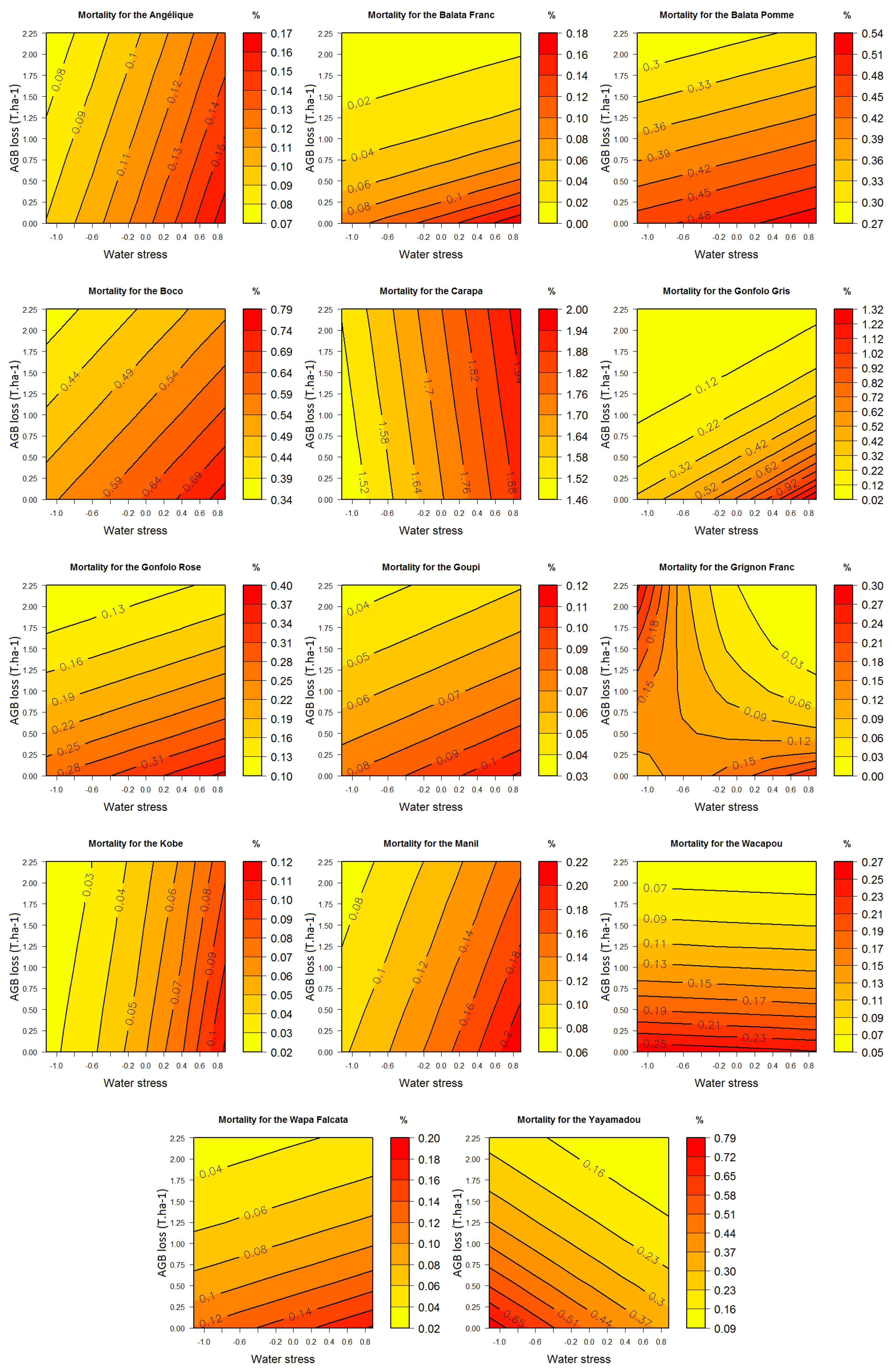 - Aubry-Kientz, M.; Hérault, B.; Ayotte-Trépanier, C.; Baraloto, C.; Rossi, V. Toward trait-based mortality models for tropical forests. PLoS ONE 2013, 8, e63678. [Google Scholar] [CrossRef]