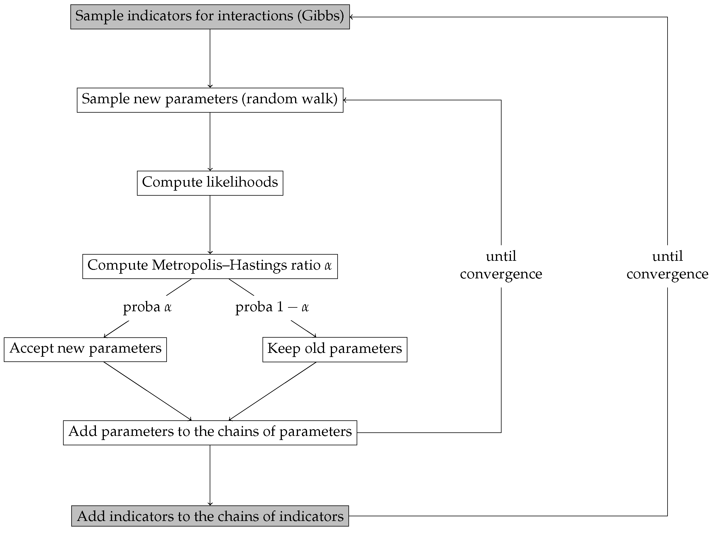 - Dellaportas, P.; Forster, J.J.; Ntzoufras, I. On Bayesian model and variable selection using MCMC. Stat. Comput. 2002, 12, 27–36. [Google Scholar] [CrossRef]