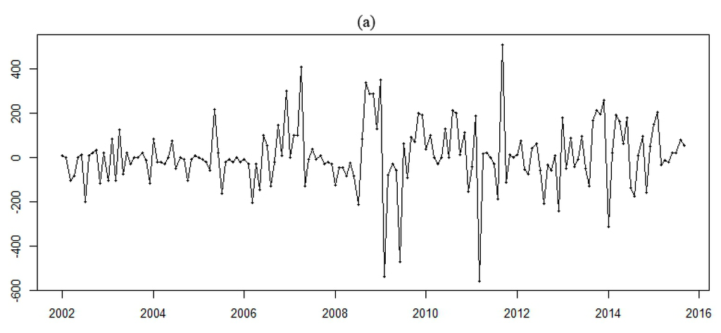 - Trapletti, A.; Hornik, K.; LeBaron, B. Time Series Analysis and Computational Finance. Package “tseries” in R. Available online: https://cran.r-project.org/web/packages/tseries/tseries.pdf (accessed on 10 December 2015).