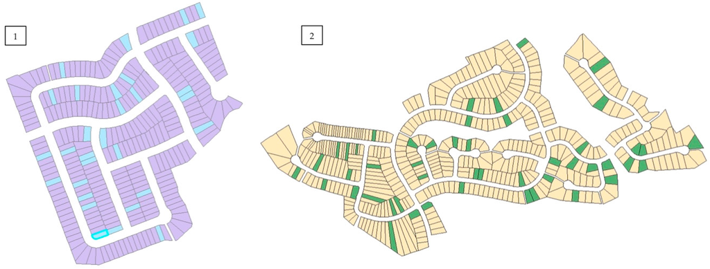 Neighbourhood extents and randomly selected private properties for Stoney Creek, London (1) and Millview, Halifax (2).