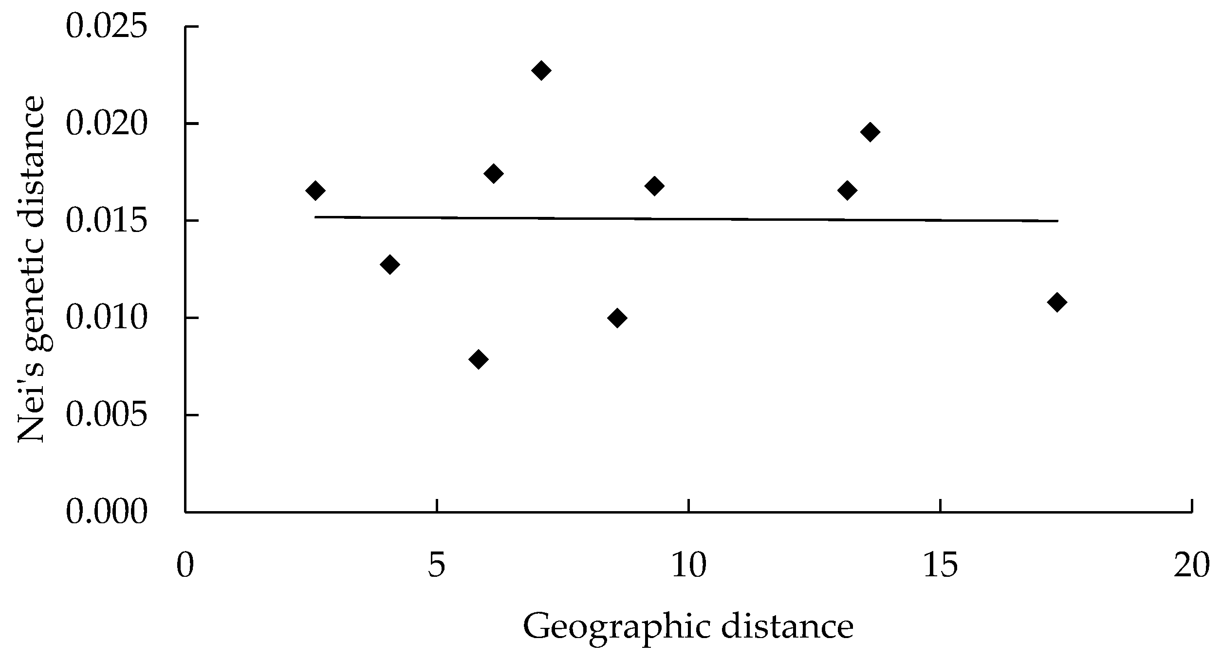 - Excoffier, L.; Laval, G.; Schneider, S. Arlequin Version 3.01. An Integrated Software Package for Population Genetics Data Analysis; Computational and Molecular Population Genetic Lab, Institute of Zoology, University of Berne: Bern, Swizerland, 2006. [Google Scholar]