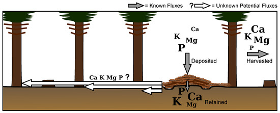 However, the long-term and systematic redistribution of slash constitutes a sustained disturbance to forest nutrient cycles. For the stand matrix between skid trails, these operational systems are, in practice, whole tree harvests that impact nutrient stocks through the removal of stem wood, bark, branches, and foliage (according to the classification of Achat et al. [5]). Such removal in boreal stands increases nutrient export 2–4-fold due to the higher nutrient contents in the non-timber biomass compartments [6], which would compromise nutrient cycle sustainability and depress growth [7]. On the other hand, by concentrating the non-timber residues as brash mats on skid trails, their nutrients are not exported from the system, rather they stay within the stand concentrated strip-wise on roughly 20% of the stand’s surface. A similar residue treatment is the piling of clearcut slash into windrows. In a nutrient-poor slash and longleaf pine forest (Pinus elliottii and Pinus palustris, respectively) 15–40% of total ecosystem nutrients were concentrated on 6% of the stand in windrows [8]. The fate, however, of such quantities of nutrients in windrows is uncertain: increased mobility and leaching has been observed [9] while slow mineralization rates of residues could retain nutrients till used by the reestablished stand [10]. The soil degradation through compaction from machine traffic can also limit root access to accumulated nutrients and biological communities that regulate decomposition rates of overlying brash mats [11,12].