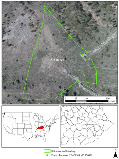 A team of researchers, regulators, and industry practitioners have addressed the reforestation challenges on reclaimed mine sites by developing a set of recommendations known as the Forestry Reclamation Approach (FRA) [,]. When these guidelines are followed during initial mine reclamation, forest establishment can be successful, with high survival and hardwood growth rates similar to regenerating stands of high-quality forests [,,]. Additionally, reclaimed surface mined lands that currently exist as grasslands or shrublands (legacy mines) can be rehabilitated using the FRA by controlling competing vegetation, mitigating soil compaction, and planting a diverse mix of native tree and shrub seedlings [,,].