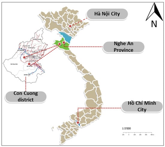 - Con Cuong Statistic Department. Socio Demographic of Con Cuong District; Con Cuong People Committee: Con Cuong, Vietnam, 2015. [Google Scholar]
