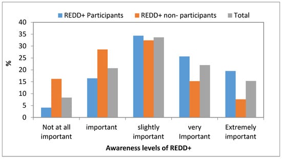 Using a scale of 1 to 5, respondents were asked about the importance of reducing carbon emissions from deforestation and forest degradation (REDD+) to the environment to and climate change. As shown in Figure 6, results indicate that 33.7% said REDD+ is slightly important, 22% saw it as being important and 15.3% mentioned that it is very important. Significant differences can be observed between the two groups. It is worth mentioning that those who responded that REDD+ was important were also usually the ones who accepted the REDD+ program and the payments for carbon. On the other hand, groups that expressed willingness-to-participate in REDD+ were also the ones who mentioned that the program was important for addressing climate change and protecting the environment.