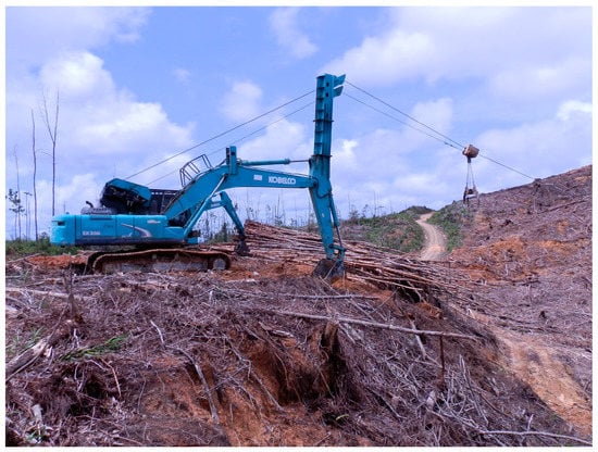 - Torgersen, H.; Lisland, T. Excavator-based cable logging and processing system: A Norwegian case study. Int. J. For. Eng. 2002, 13, 11–16. [Google Scholar]