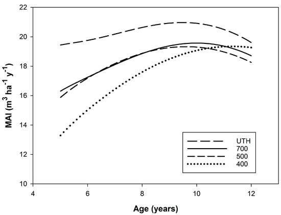 3.2. Yield and MAI Curves