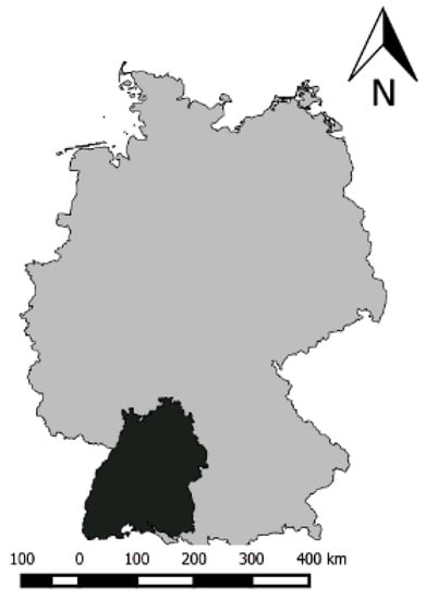 Study area Baden-Württemberg (black) located in southwest Germany (grey).
