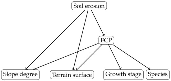 Structure of the Bayesian network model used to estimate the possibility of soil erosion.
