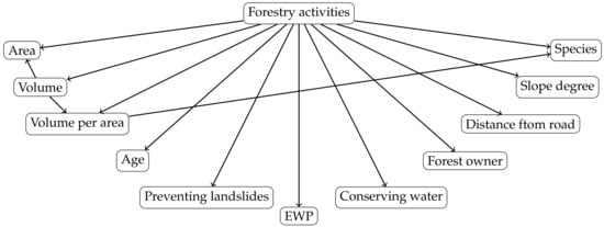 Structure of the Bayesian network model to estimate the probability of forestry activities.