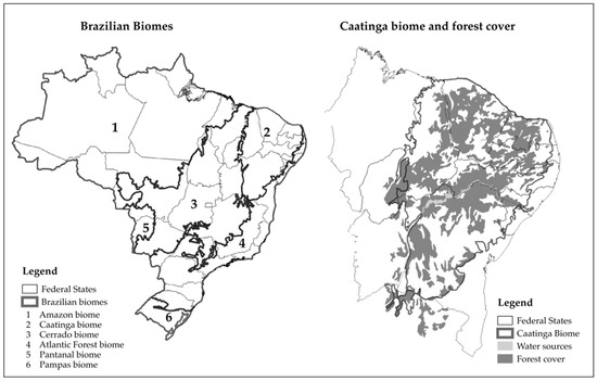 Brazilian biomes and forest cover in Caatinga biome (Elaborated by the author cf. [19,20]).