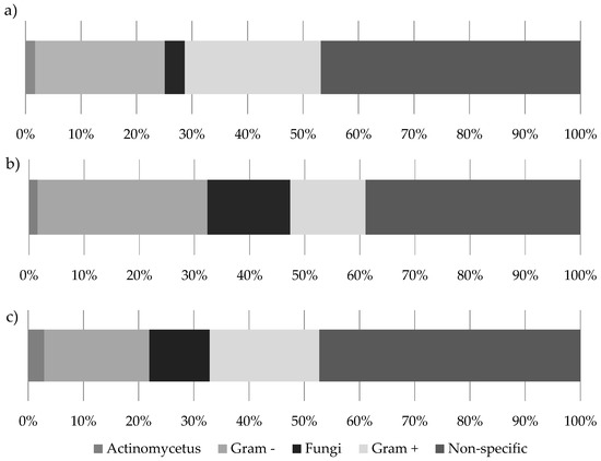 - Zelles, L. Fatty acid patterns of phospholipids and lipopolysaccharides in the characterisation of microbial communities in soil: A review. Biol Fertil. Soils 1999, 29, 111–129. [Google Scholar] [CrossRef]