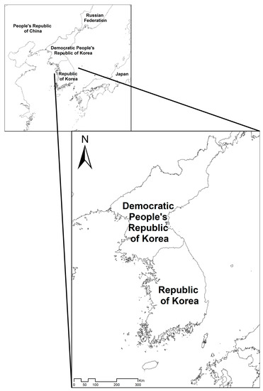 Study site. Korean Peninsula (KP): The Republic of Korea (ROK) in the south and the Democratic People’s Republic of Korea (DPRK) in the north.
