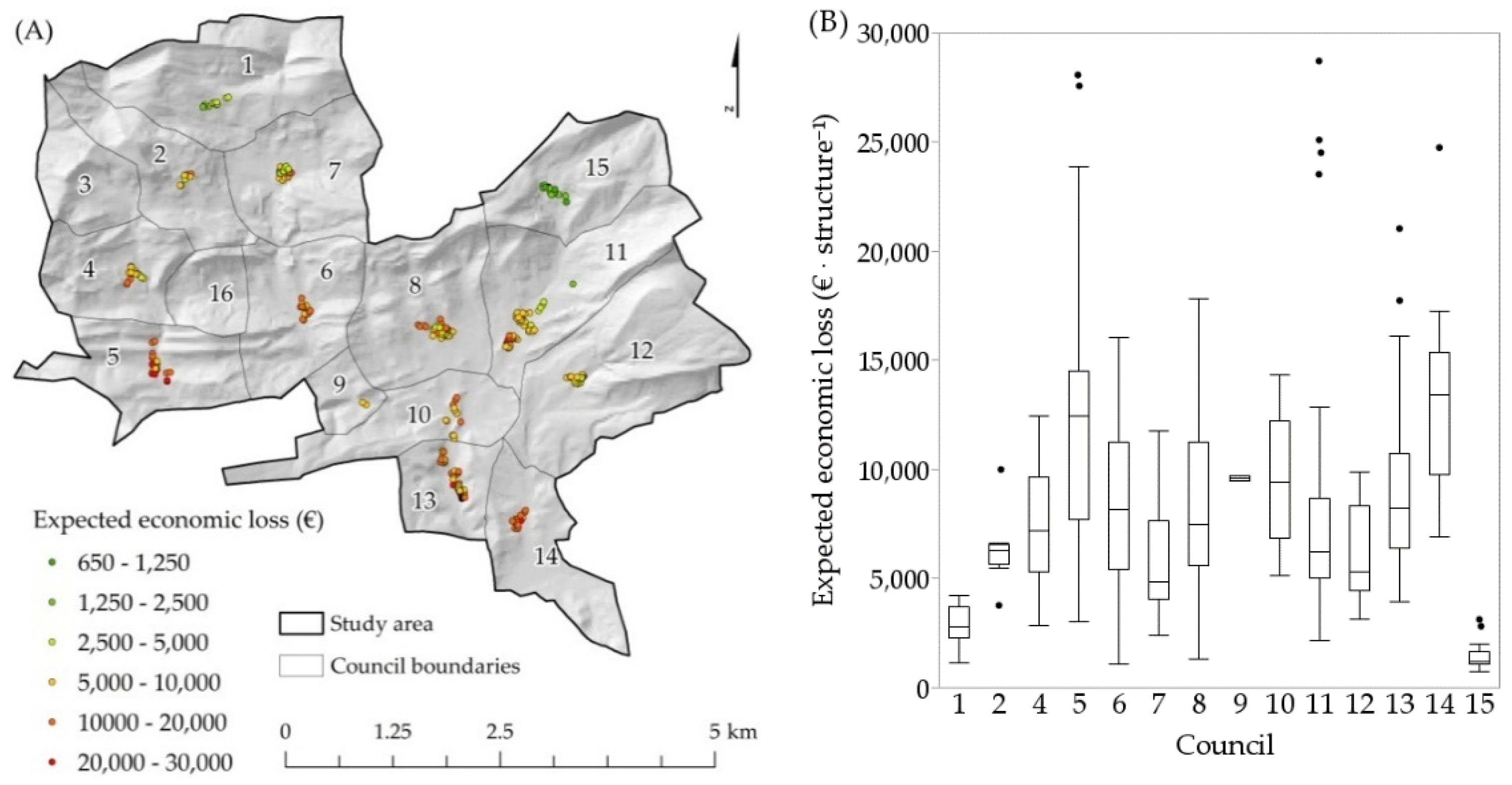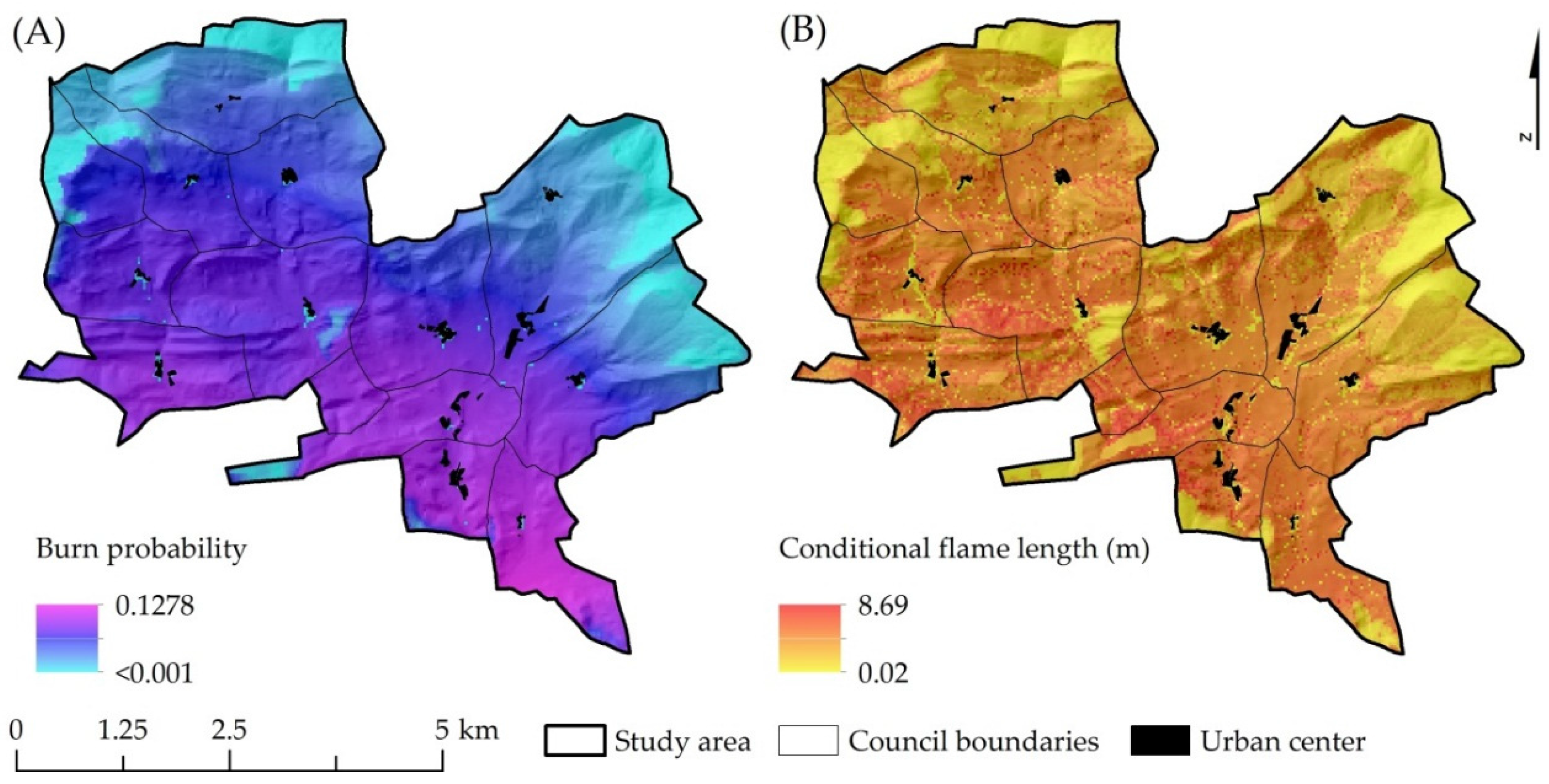 35]. Our fire risk quantitative assessment results showed a very strong structure-level spatial gradient in economic loss within and among the 14 councils in the Juslapeña Valley study area, and provided findings that are potentially useful for insurance companies and local landscape managers.