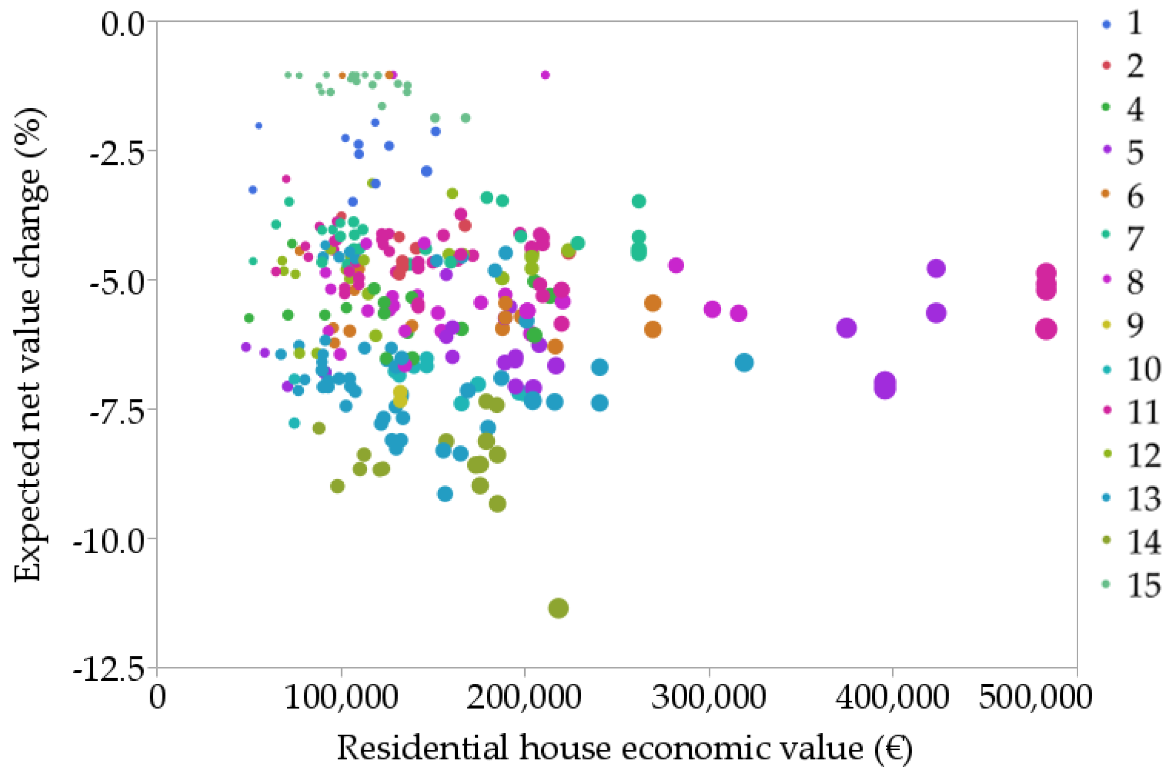 32]. These estimates can be then used in risk assessments to quantify the potential socioeconomic impacts, including expected net value change on residential structures [