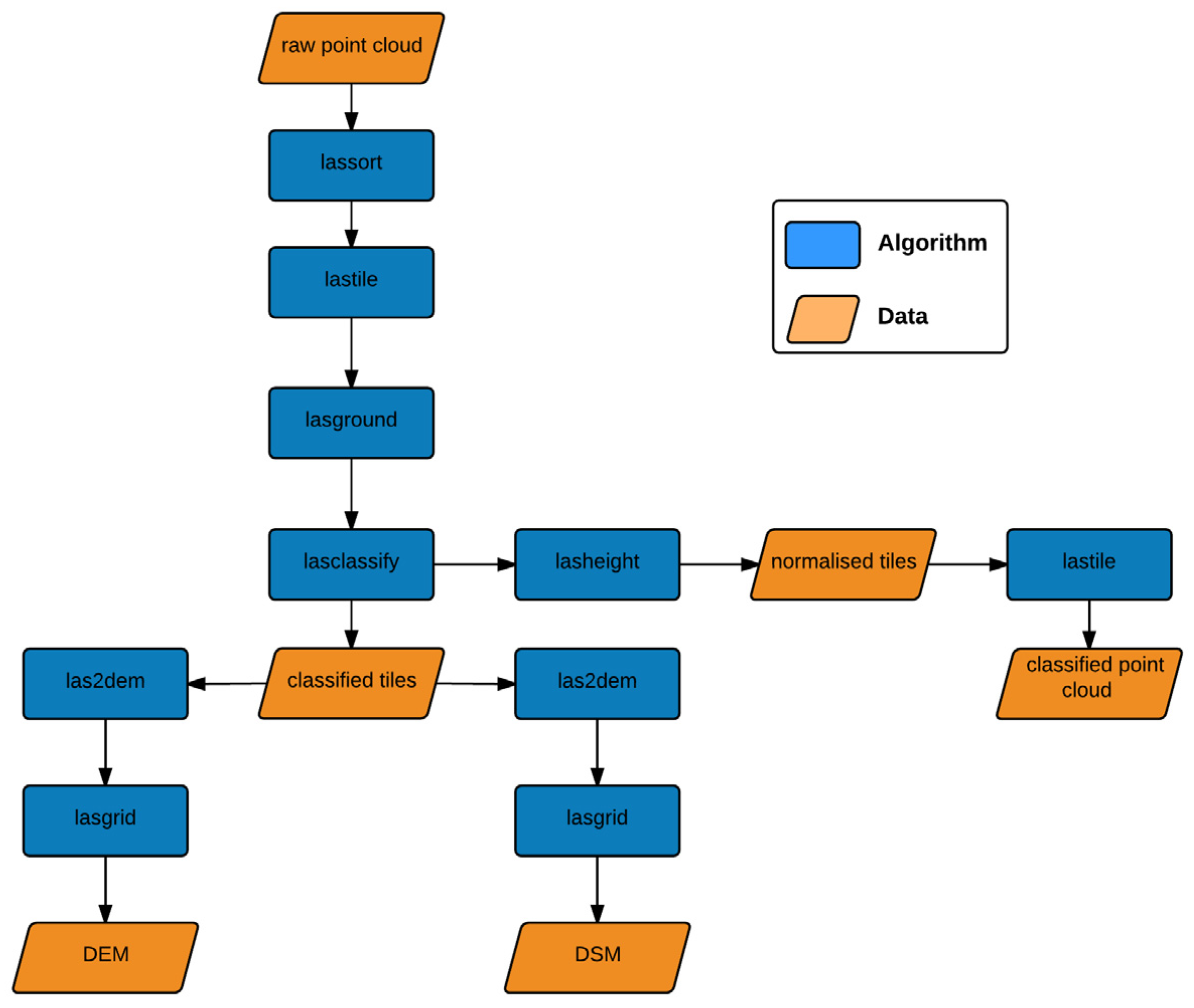 Summary of point cloud post-processing using LAStools. The commands were executed in a single batch script.