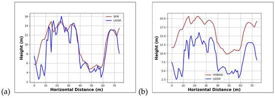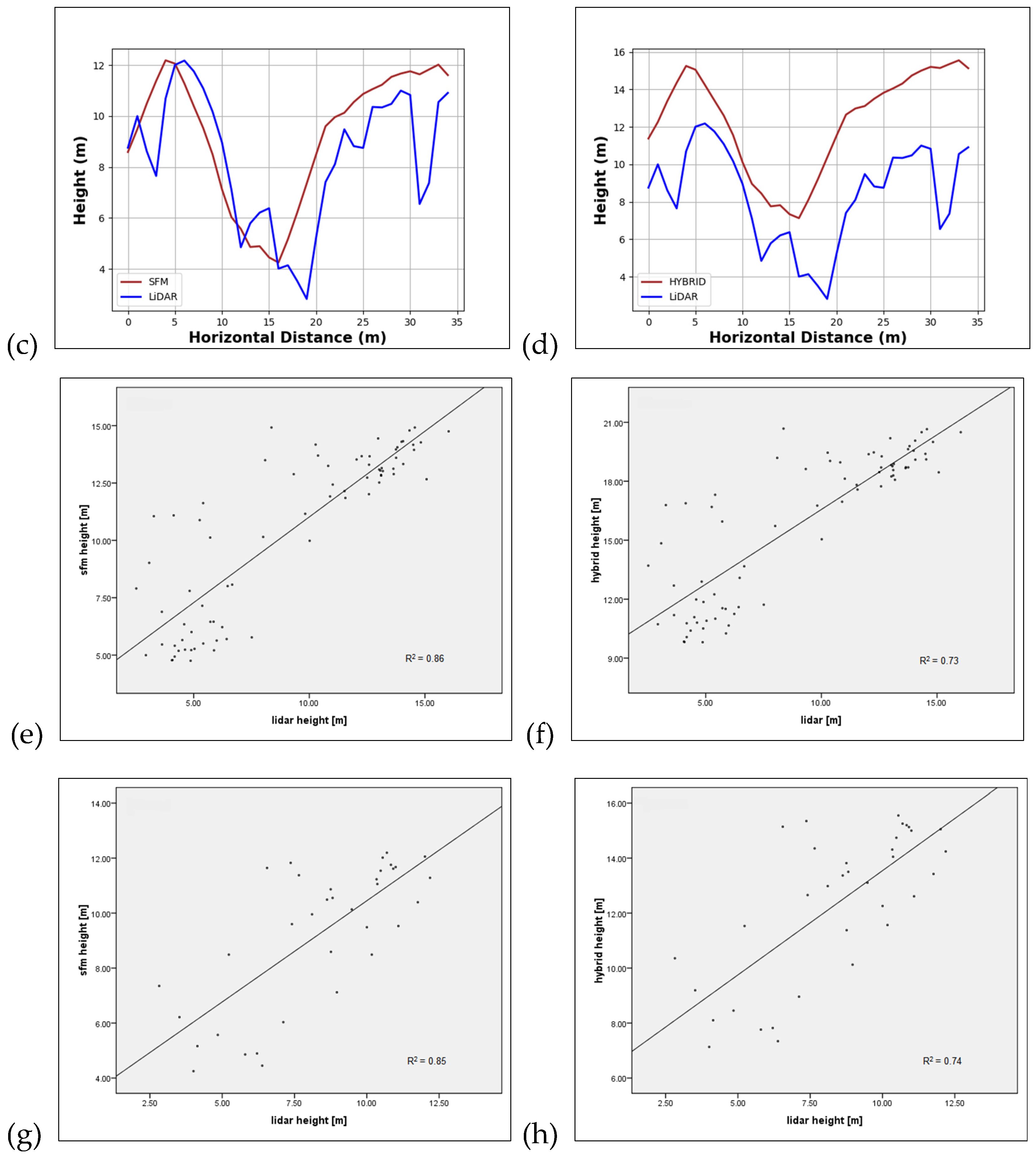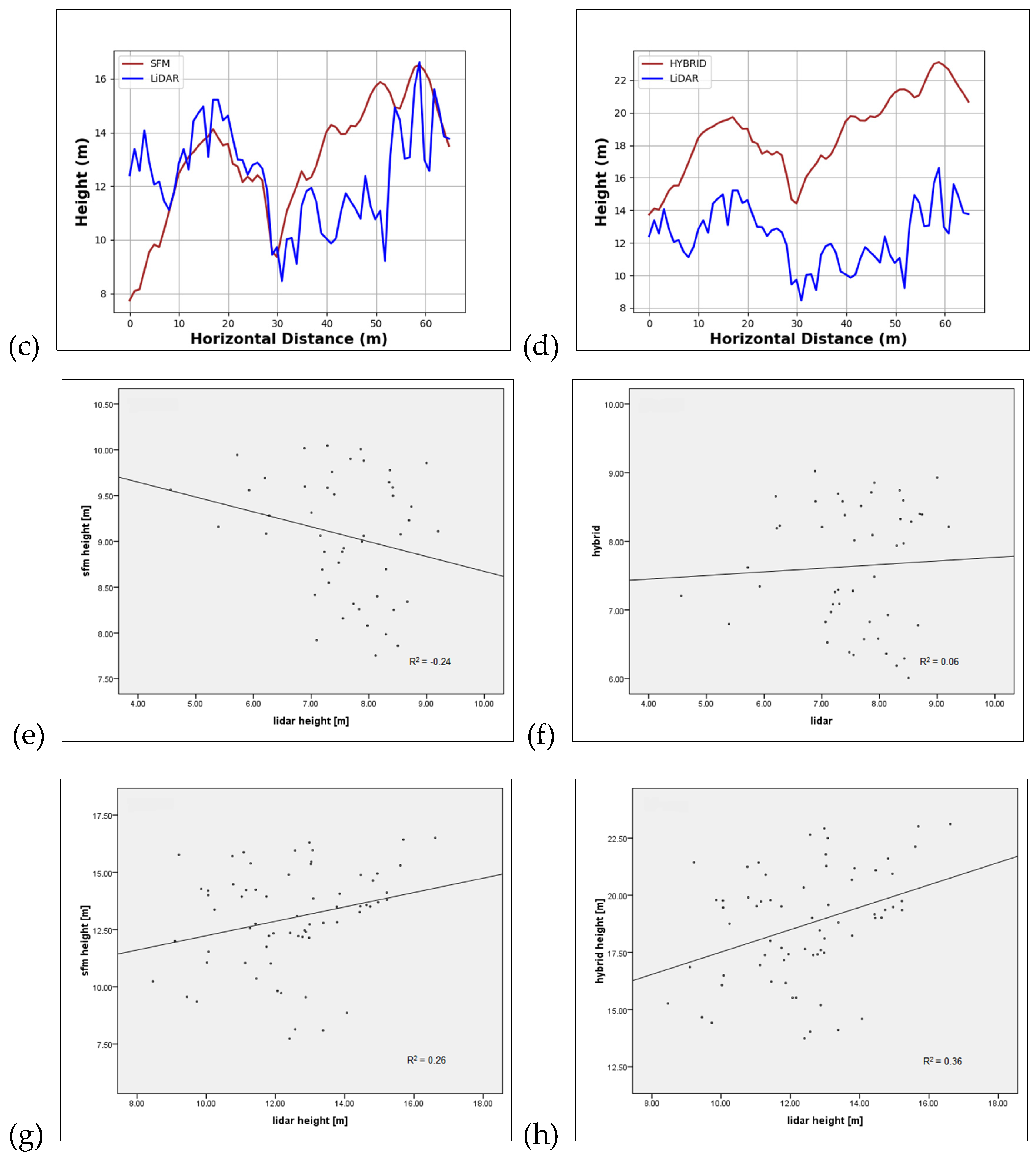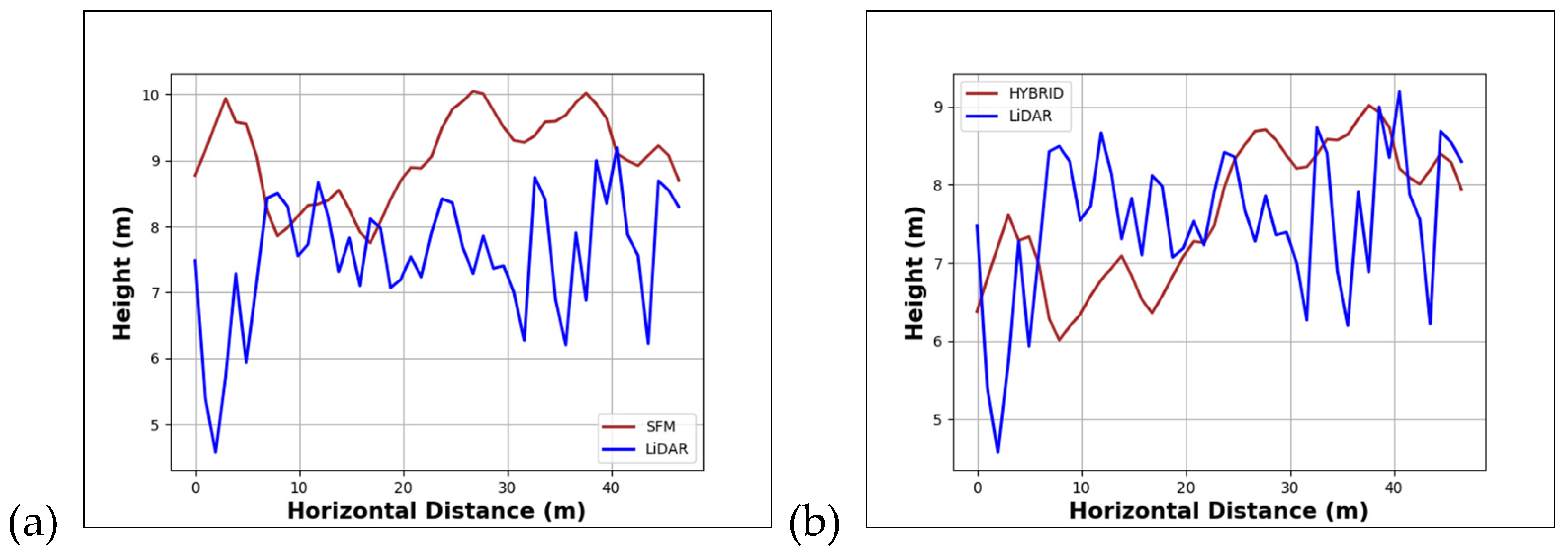 3.1. Point Clouds: Sparse Canopy SfM/Lidar Comparison